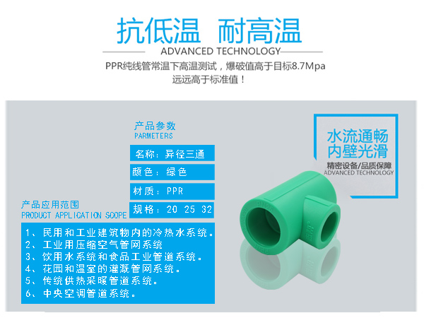 □  管件連接牢固:由于聚丙烯具有良好的熱熔接性能,熱熔連接將同種材料制造的管材和管件連接成為一個(gè)整體,杜絕了漏水的隱患。